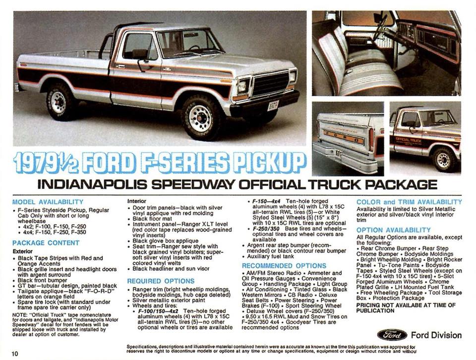 The situation was so dire that in 1979, it’s possible Ford’s replica of the actual Indy pace car Mustang could have been slower than the replica “official trucks” F-series pickups used for anything that called for a truck at the 500. Today, the “Indianapolis Official Speedway Truck Package” Ford F-series trucks remain elusive reminders of how strange things got in those dark days; it’s also a pretty cool pickup to revisit.