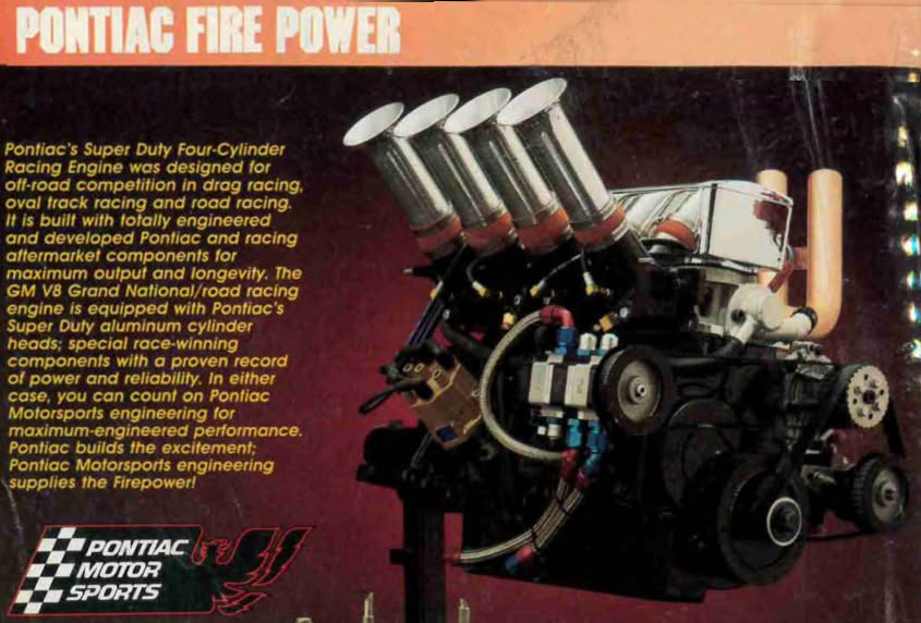Exactly how many Super Duty motors were produced is difficult to determine, especially since Pontiac apparently sold some of the heavy-duty parts a la carte besides complete engines. Also, while I can tell that the motor appeared around 1982, I can’t find a definitive answer as to when Pontiac finally stopped marketing parts, though I know that racing cars in some series with this motor were still competing into the 2000s. I can say that of the 3.8 to 4.2 million Iron Dukes made from 1977 to 1993, no more than a few thousand were these enigmatic powerhouses. It’s no wonder that so few people know that they ever existed, or, like me, just assumed that any fast Iron Duke had a blower on it. Still waters do run deep.