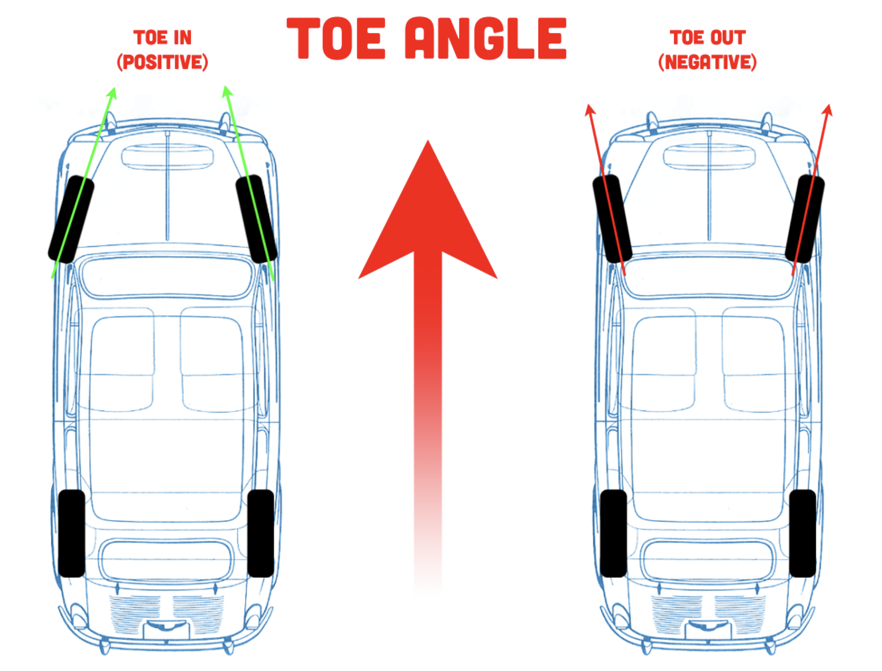 Toe – This is the angle of the wheel when viewed from above.