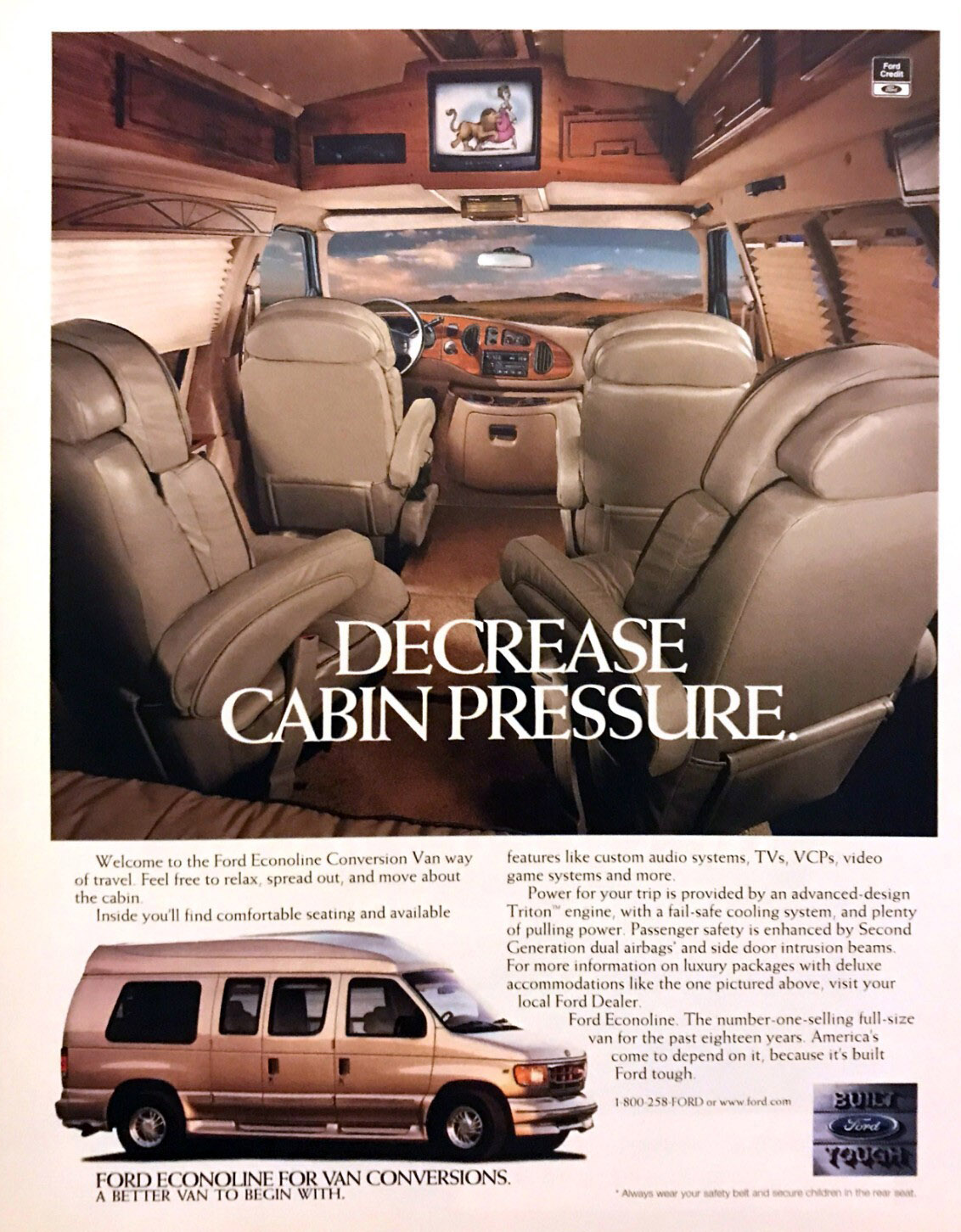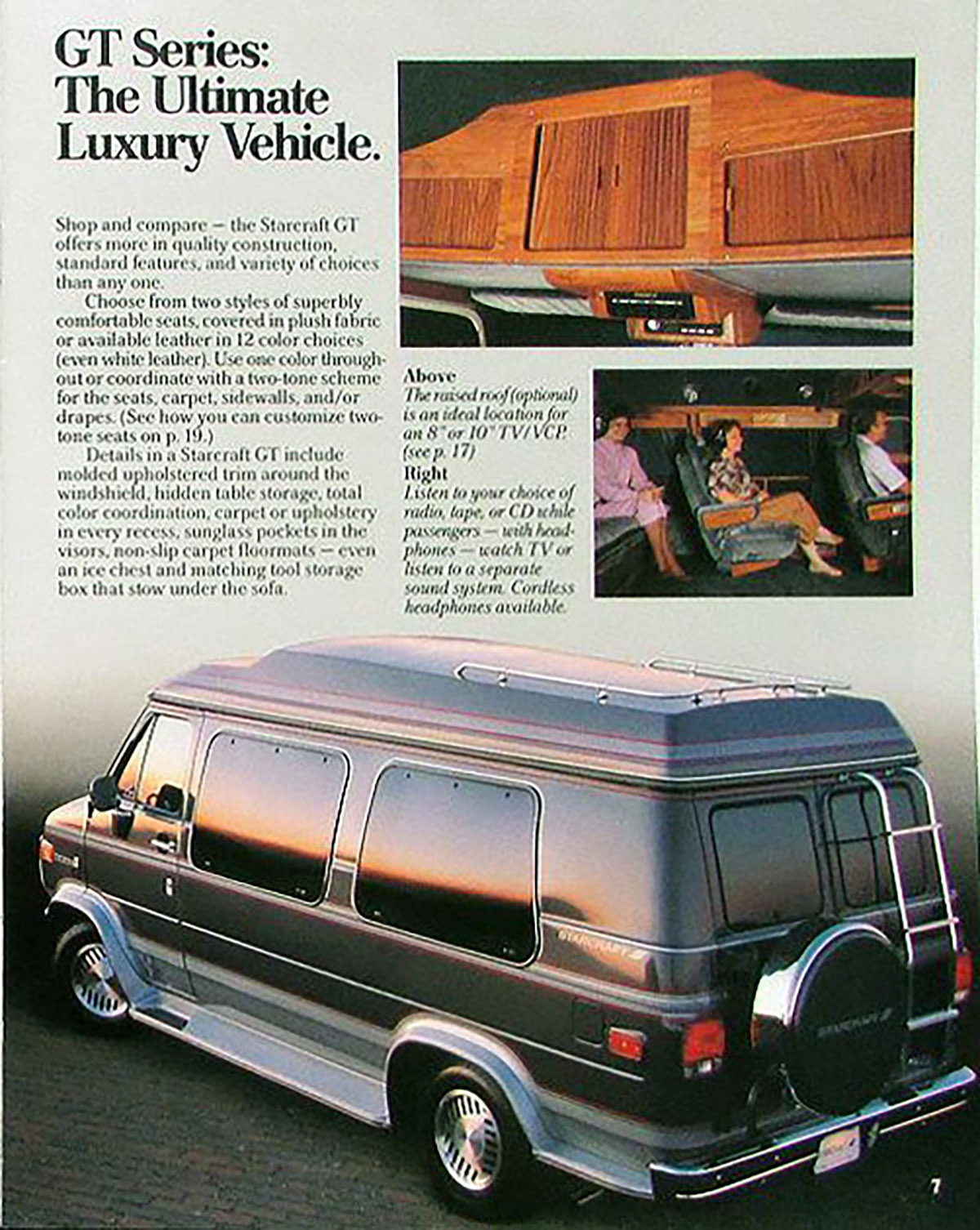 The answer was conversion vans; customized vehicles that offered extra seating instead of round beds in back, plus giant glass panels to replace the bubble windows. These were often done by firms that built motorhomes but suffered faltering sales because of the fuel crisis.