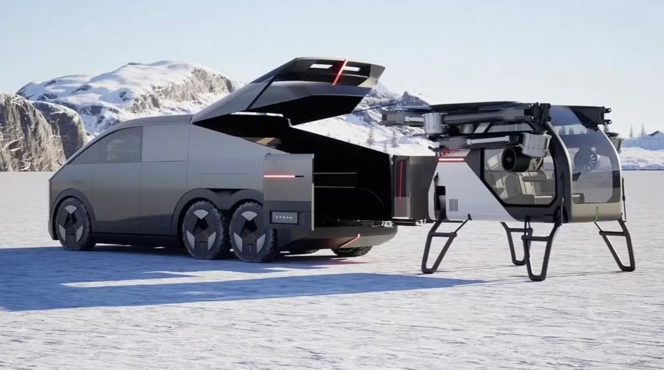 The object? A compact helicopter or drone that can rapidly deploy from anywhere the six-wheeled van can take it: