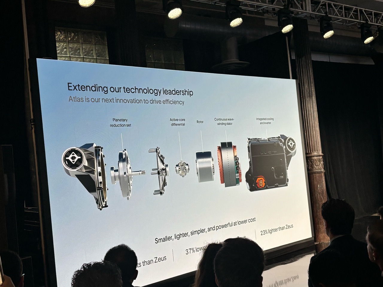 Here’s an image of the new Atlas drivetrain, which Lucid Emad Dalia says will be the most efficient and most cost effective EV system in the world (beating vehicles from China, US, and Europe).