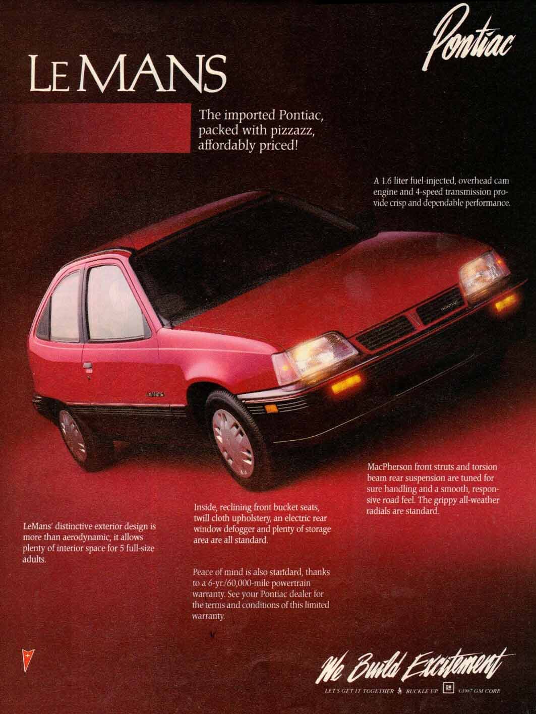 Imported to North America, you’d assume that the Kadett would have been a worthy competitor for other subcompacts but German labor costs and an unfavorable dollar-to-Deutschmark exchange rate put paid to that idea. No, GM would import the Korean-built Daewoo clone of the Kadett to the Brand of Excitement and plaster on the name of legendary Pontiac: the LeMans. Such blasphemy.