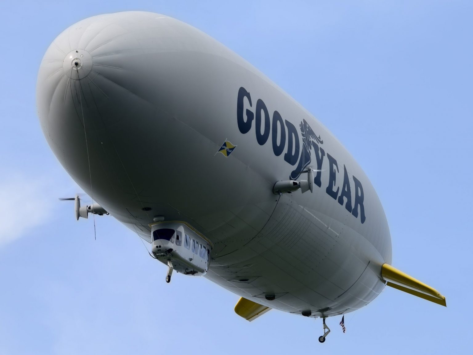 I’ll get this out of the way right now and remind you that Goodyear’s blimps aren’t real blimps. All blimps are airships, but not all airships are blimps. A blimp is a non-rigid airship, one where the shape of the envelope is maintained by the lifting gas. The Goodyear Blimp used to be a real blimp, but since 2014, Goodyear has been flying Zeppelin NT (Neue Technologie) airships by Zeppelin Luftschifftechnik. These airships are actually semi-rigid as they employ an internal 12-rib framework that helps maintain their envelopes’ shape and allows the engines to be mounted high.