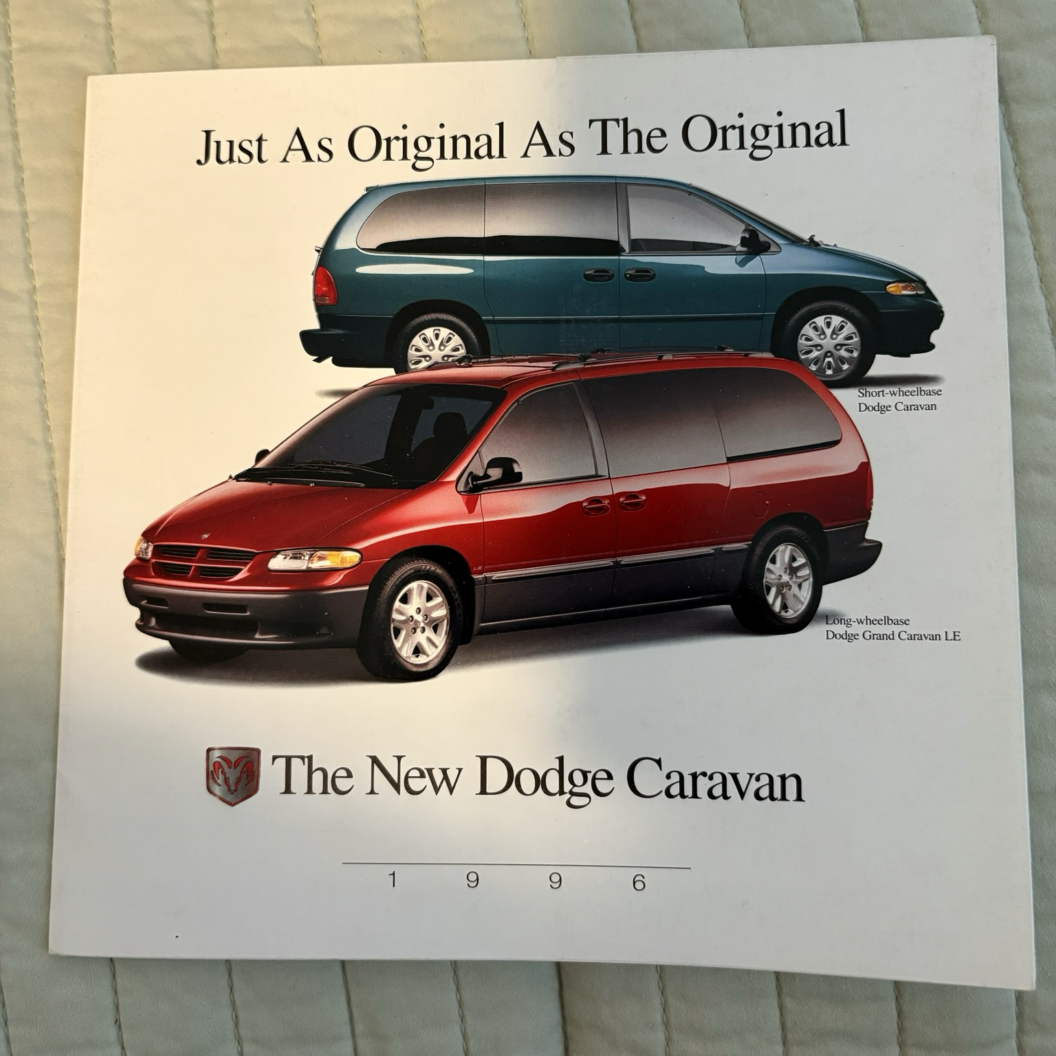 Not a VW, but I have a brochure that’s been bugging me since I looked at it a few months ago for the first time in many, many years and noticed something very weird. It’s an early launch fold-out for the 1996 Dodge Caravan; see if you can spot what’s wrong with it.