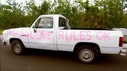 That’s usually denoted by a Confederate flag or a stick figure family decal.